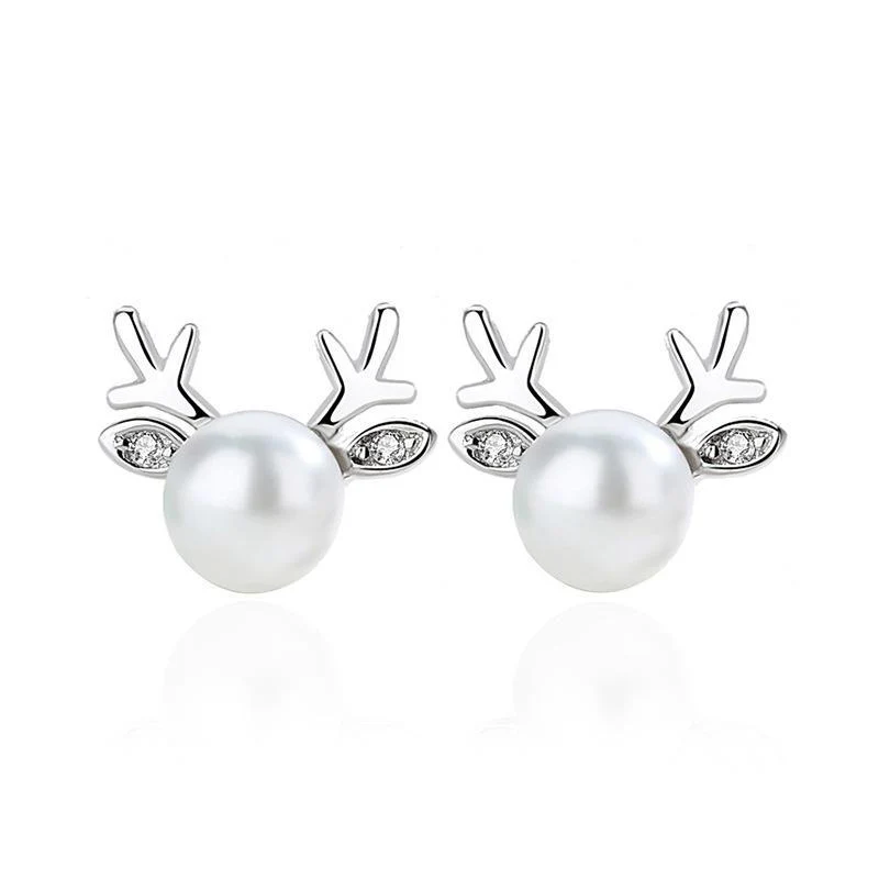 Deer Pearl Necklace and Earrings in 925 Sterling Silver